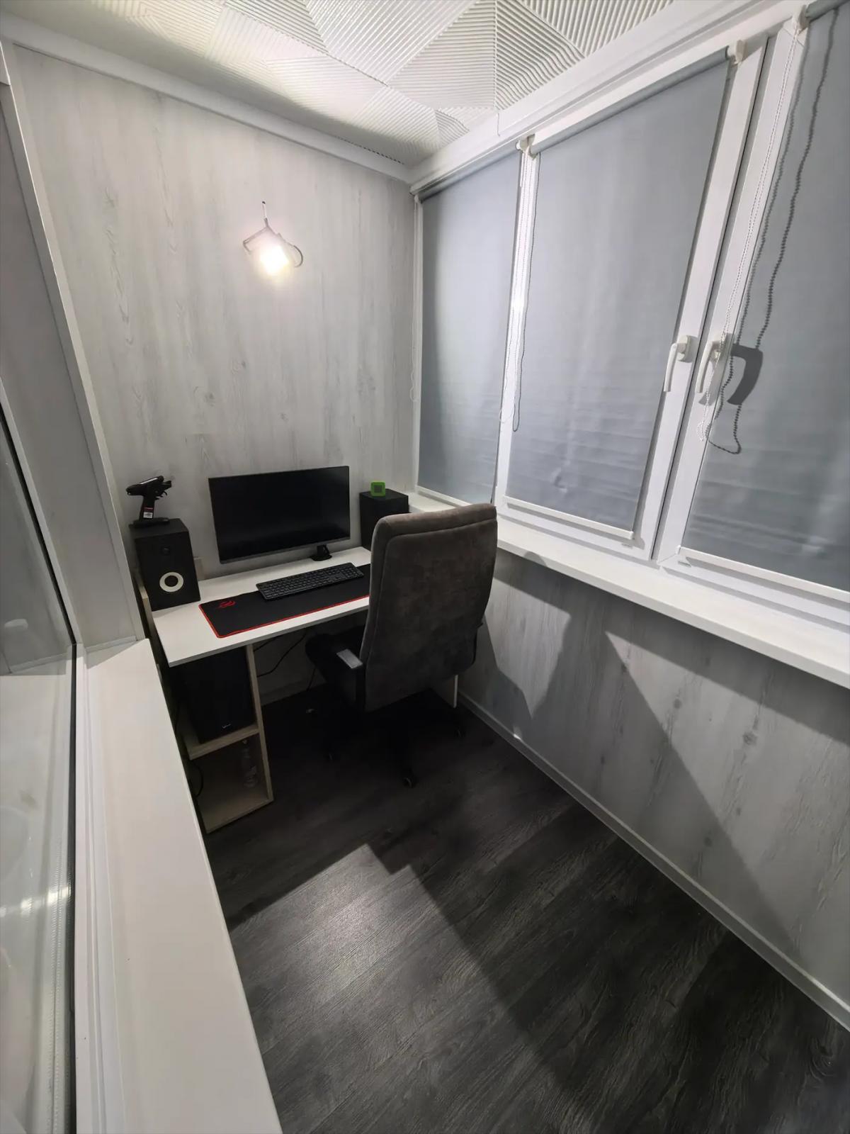 Сергей из Минска долго думал, как рационально использовать просторную лоджию. В итоге решил превратить эти несколько квадратов в полезное пространство и организовал себе полноценный кабинет для работы из дома.