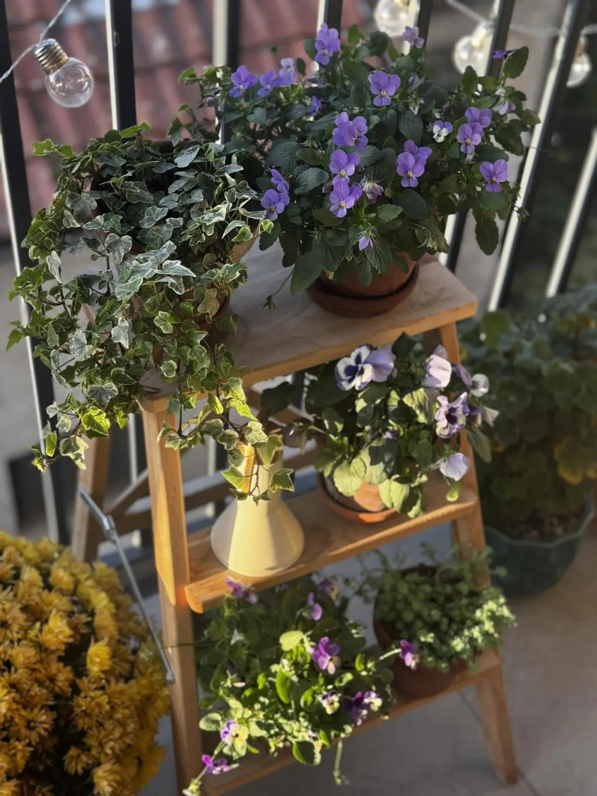 - Прикрепила полки к боковой стене и расставила на них цветы.