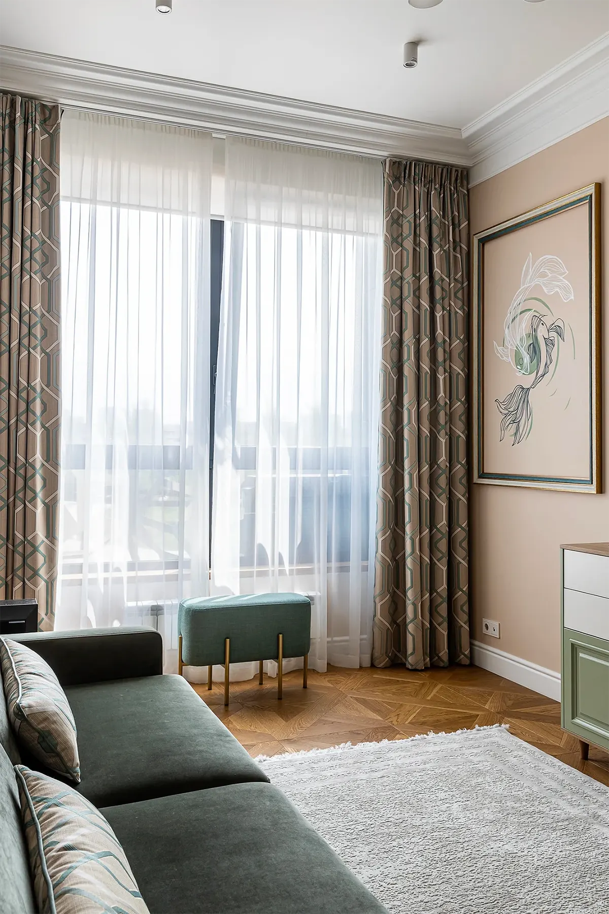 Хозяйка квартиры — энергичная молодая бабушка, имеющая двух внуков — заранее сформулировала пожеланий: обустроить интерьер в стиле сканди и прованс, а также предусмотреть дополнительное спальное место для детей, которые часто приезжают к ней на выходные.
