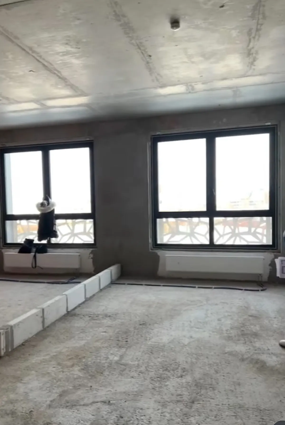 На момент покупки квартира представляла собой бетонную «коробку» без отделки и внутренних перекрытий. Застройщик разметил лишь мокрые зоны, оставив будущему собственнику свободу планирования пространства под свои нужды.