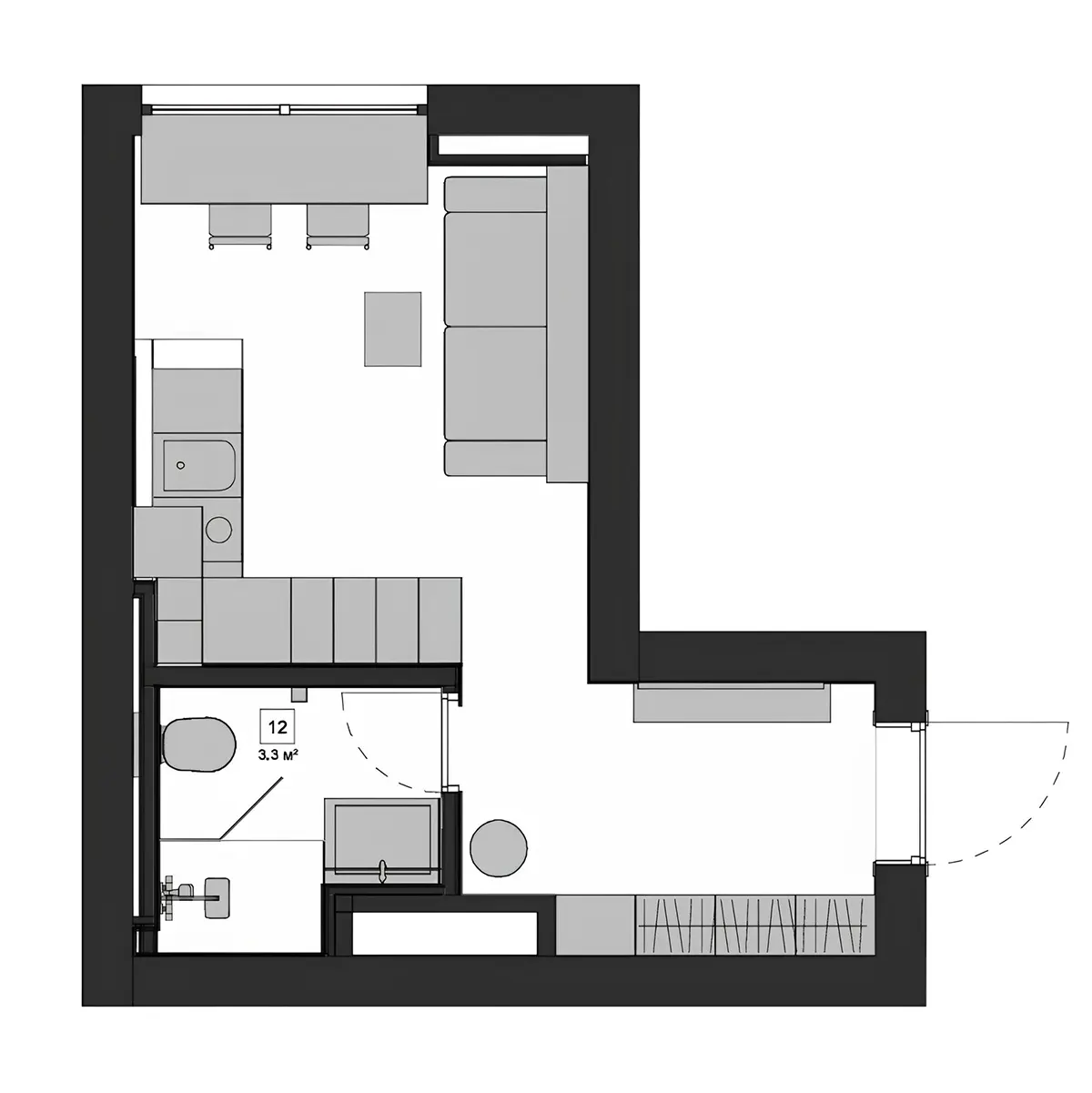 План квартиры-студии 19 кв.м.: