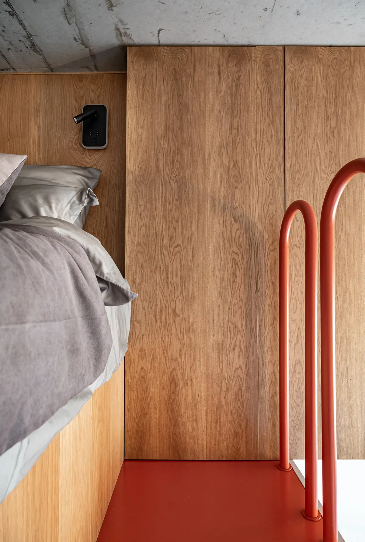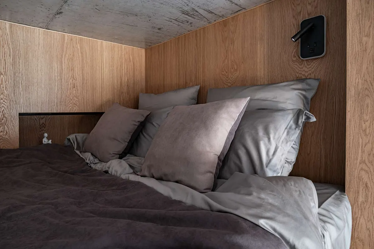 Высота потолков в квартире 3,4 метра. Благодаря этому удалось обустроить второй уровень, где разместили спальное место на двух человек.