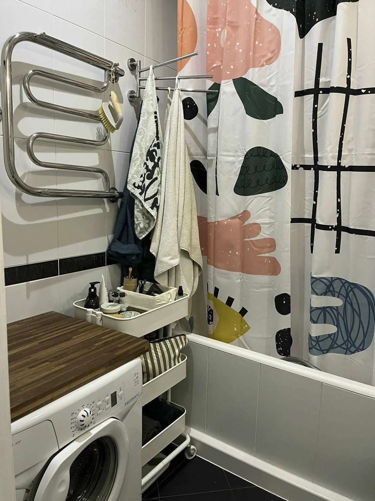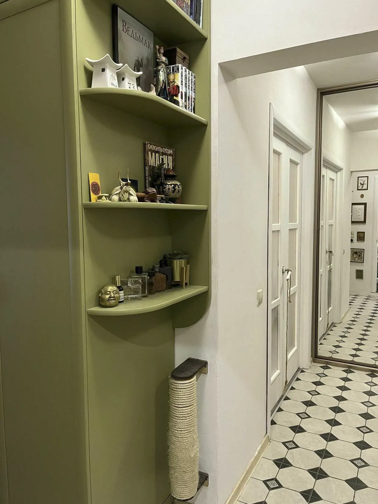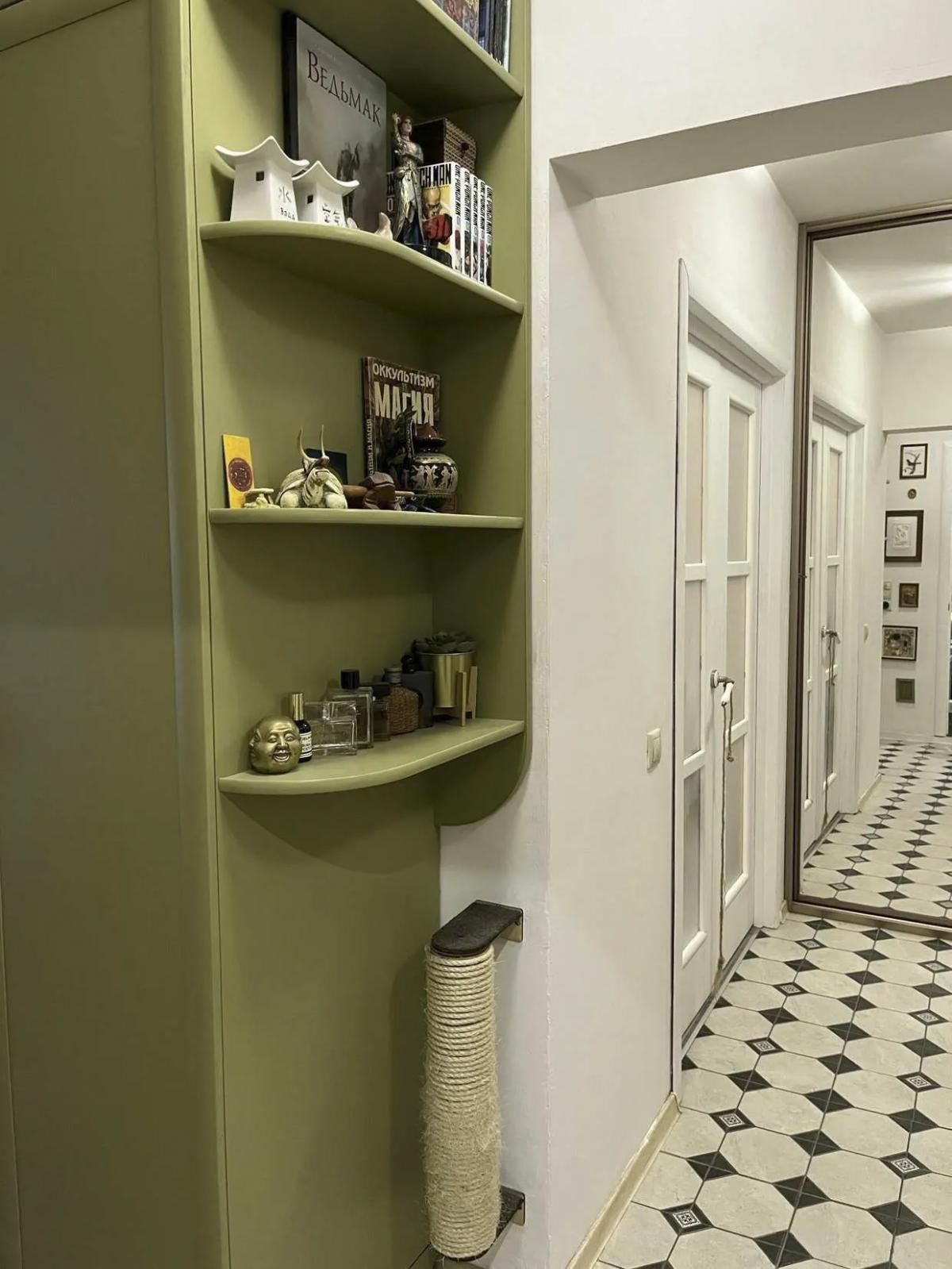 Изначально хозяева — художница Даша Титова с мужем (еще в семье есть котик) — хотели снести стену между кухней и комнатой, но она оказалась несущей. Пришлось придумывать что-то другое.