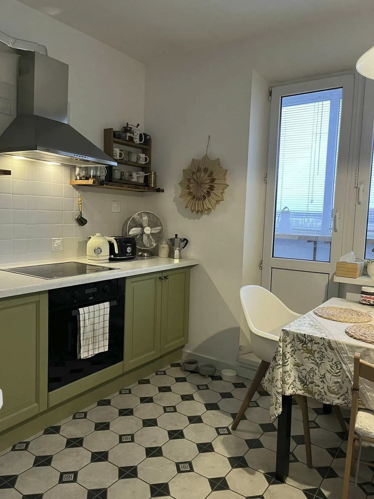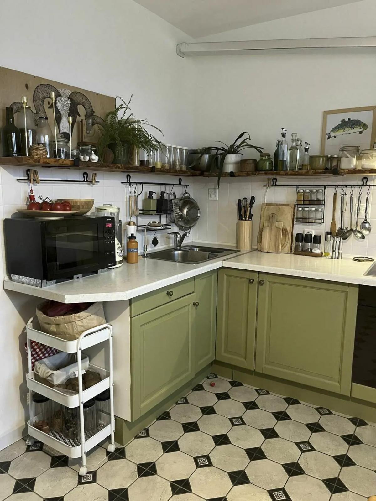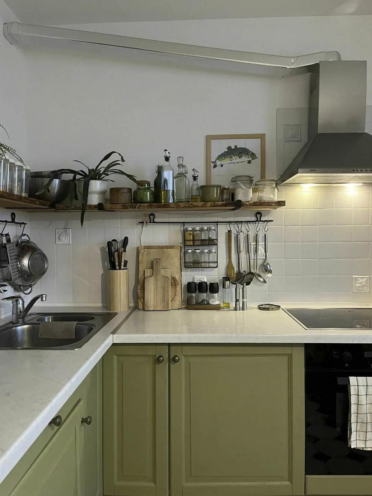 Изначально хозяева — художница Даша Титова с мужем (еще в семье есть котик) — хотели снести стену между кухней и комнатой, но она оказалась несущей. Пришлось придумывать что-то другое.
