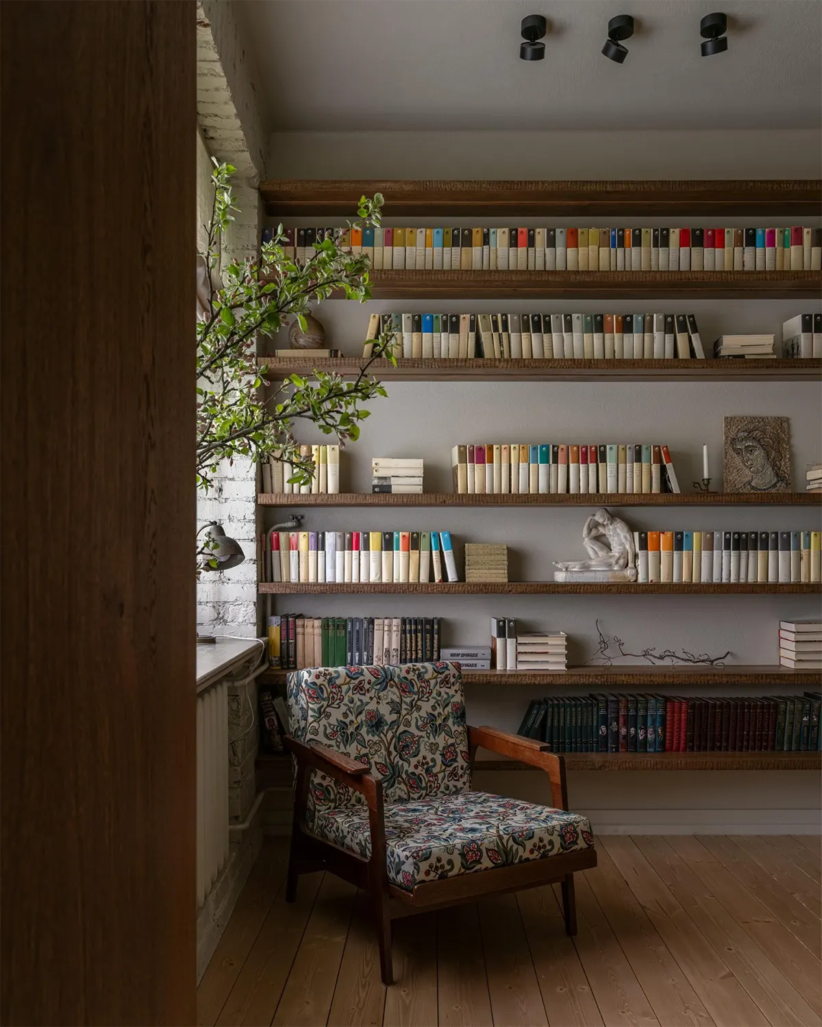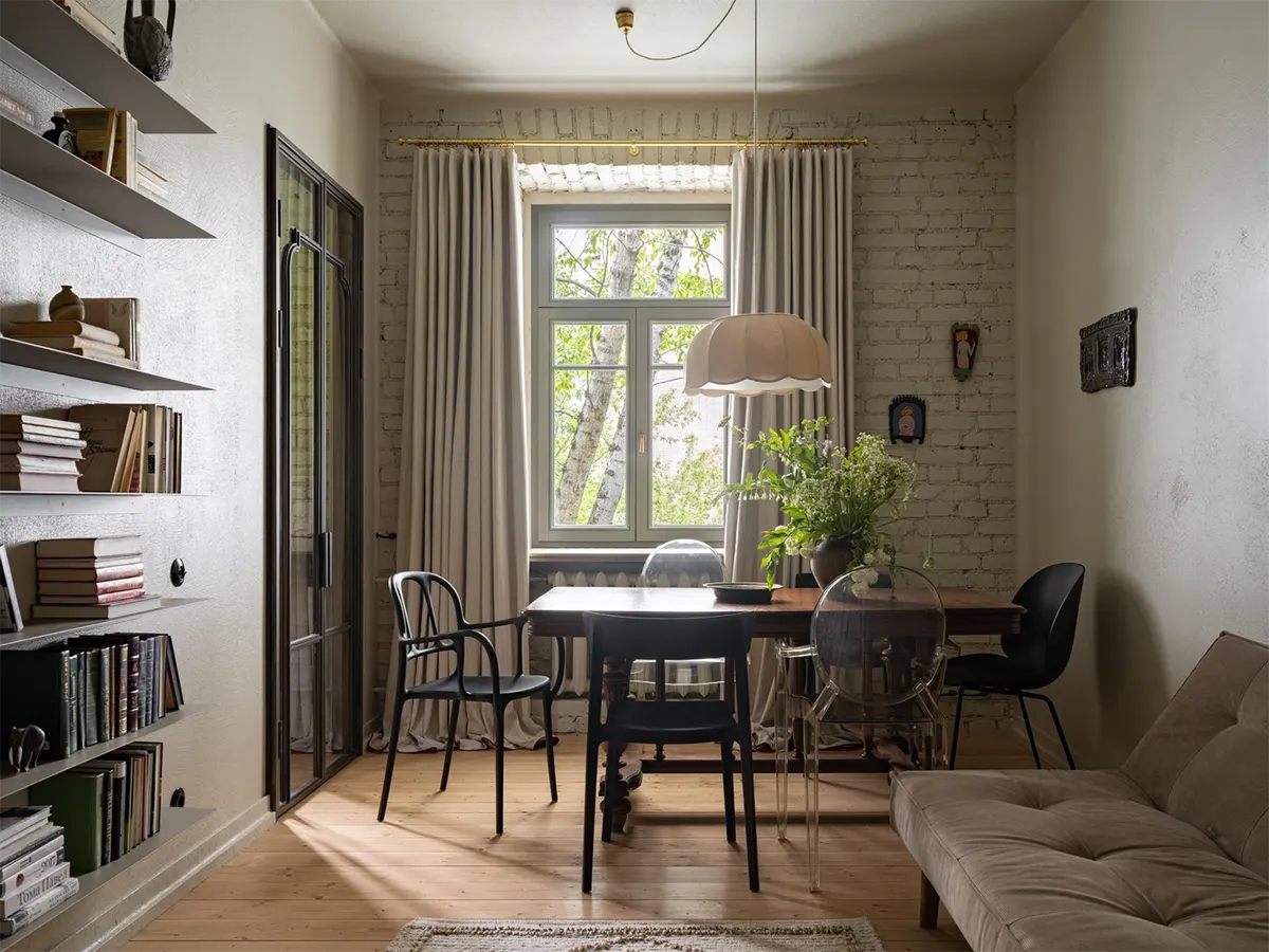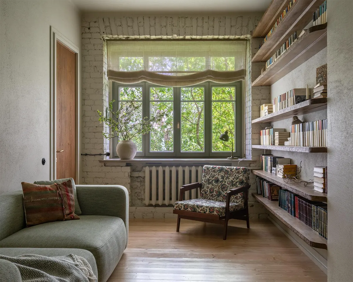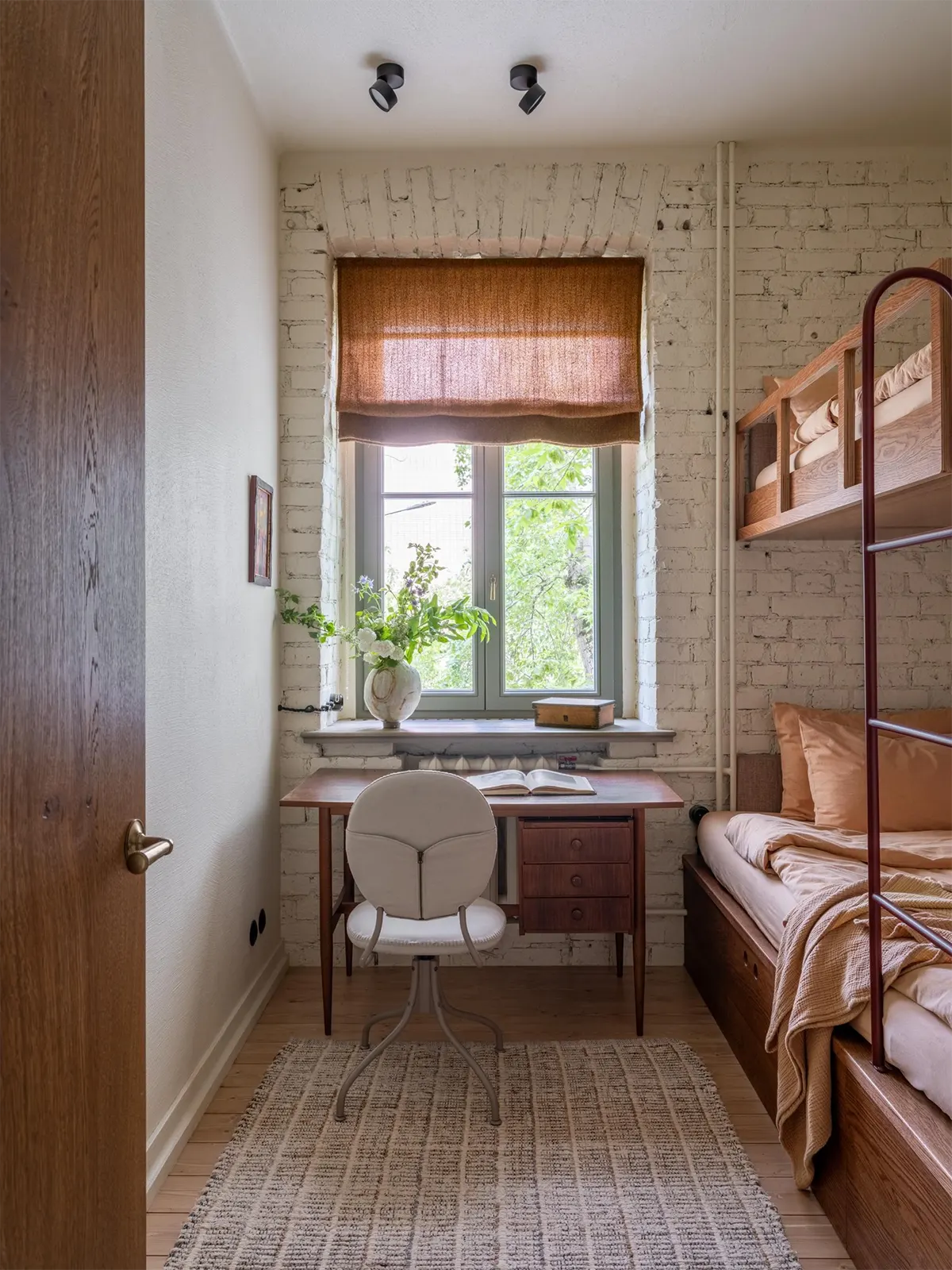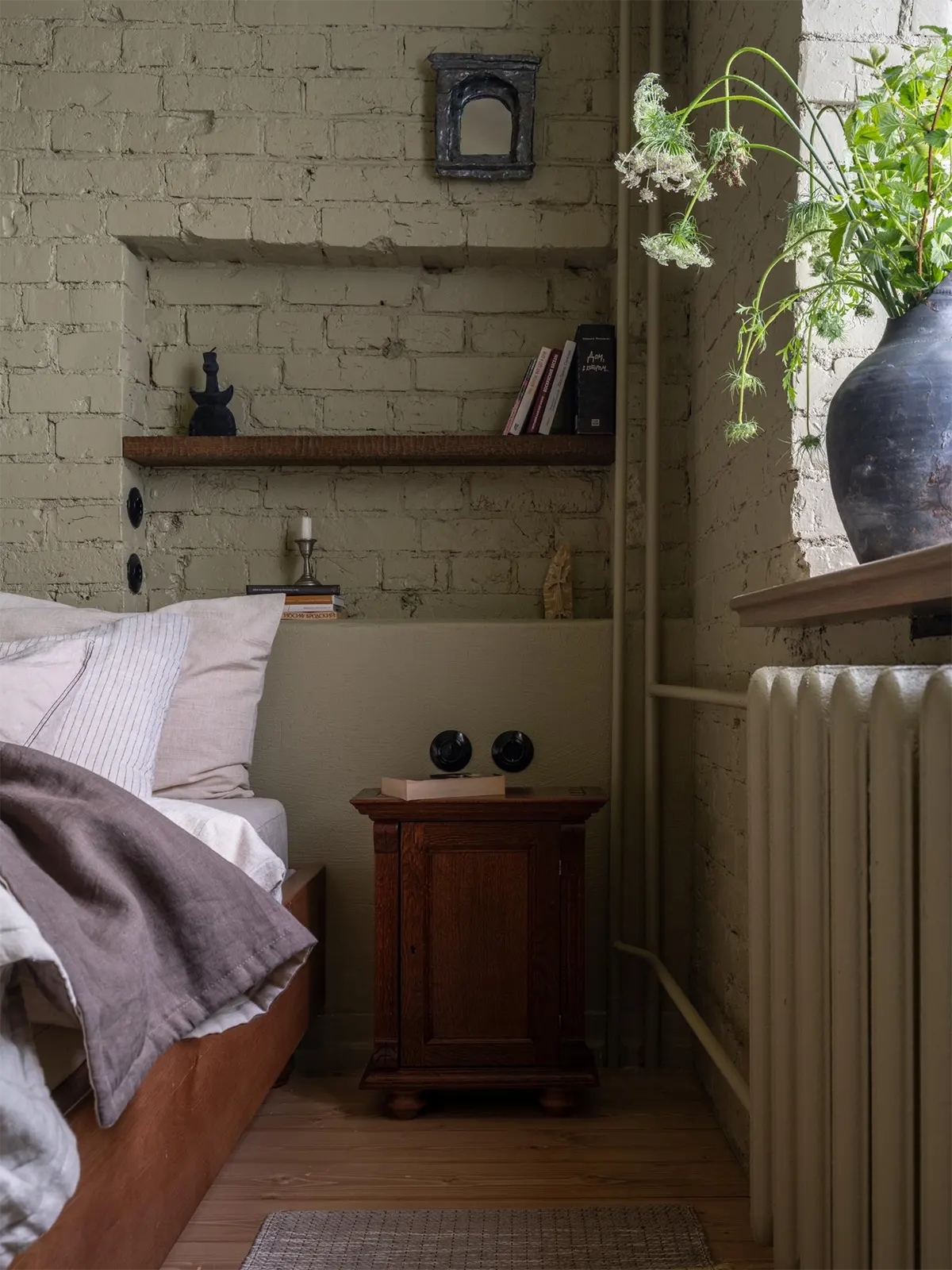 Часть мебели сделали на заказ, часть купили на «Авито» и Вернисаже (обеденный стол, кресло в гостиной, письменный стол в детской, аптечка в качестве прикроватной тумбы в спальне).