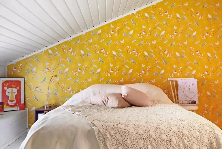 В спальне, как и в кухне-гостиной, основной акцент сделан на яркие стены. Только, признается хозяйка, за несколько лет яркий синий цвет успел надоесть — и теперь Пеппи подумывает перекрасить стены в оливковый (и я поддерживаю эту затею).
