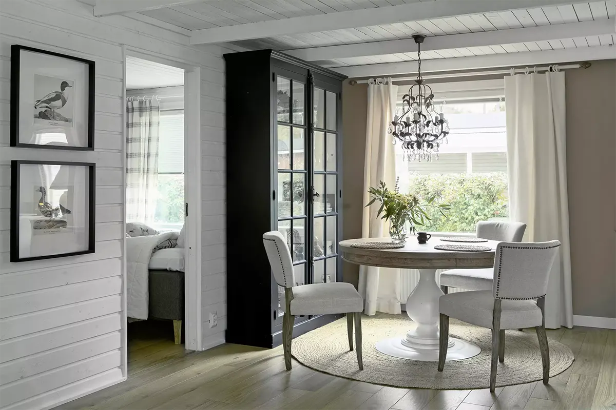 «На момент покупки этот одноэтажный деревянный дом пустовал несколько лет. Сад вокруг него зарос. Мне пришлось самостоятельно делать ремонт, перепланировку и с нуля придумывать интерьер», — рассказала Кирси Луттинен в интервью журналу Meillakotona.