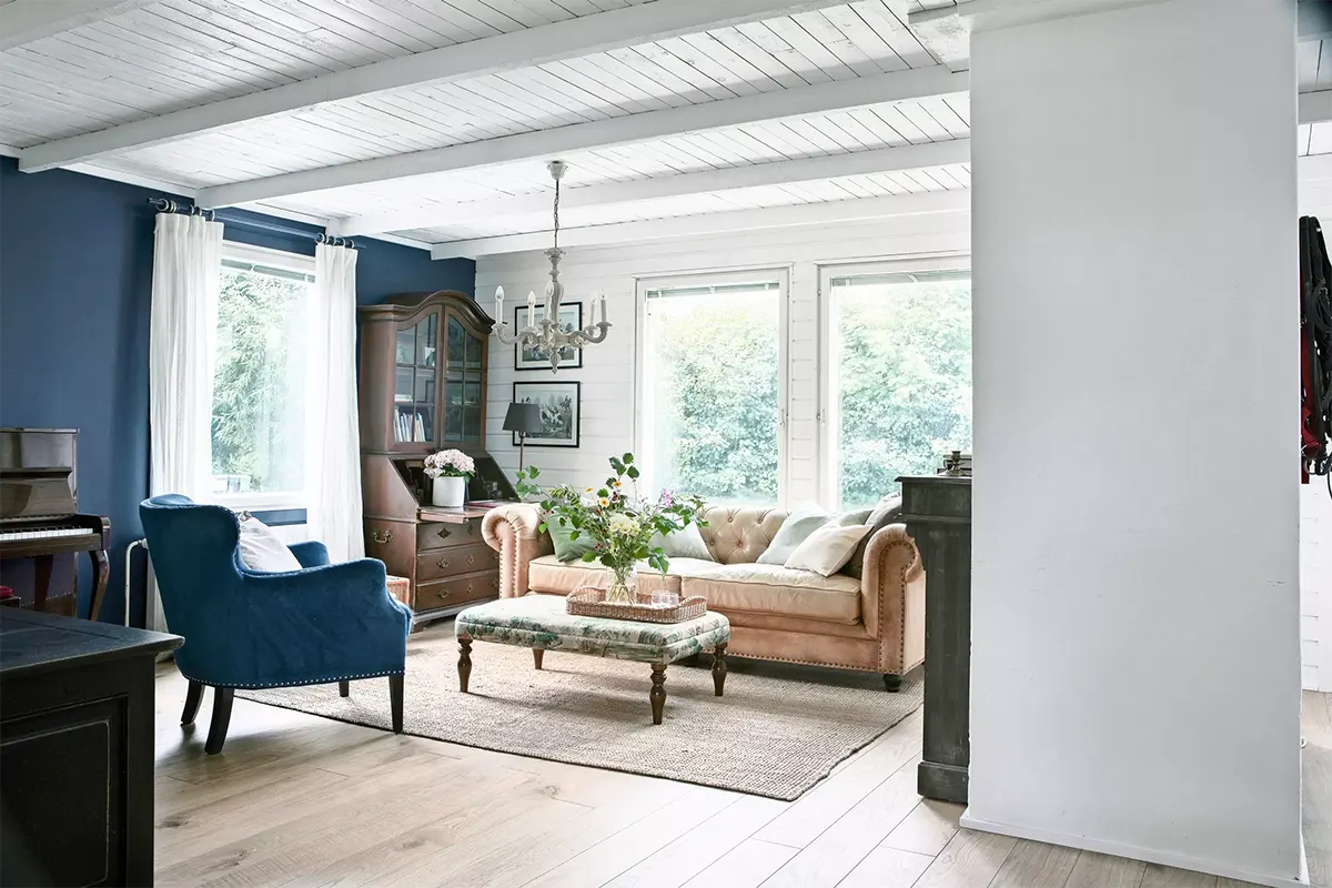 Снаружи этот деревянный дом в финском городе Оулу мало чем выделяется. Белый фасад, небольшая терраса со скамейкой, светло-зеленая дверь с ручкой в форме подковы. С виду не отличишь от сотен других скандинавских домов. Но стоит переступить порог и впечатление меняется. За скромным фасадом скрывается неожиданный интерьер с английскими нотками.