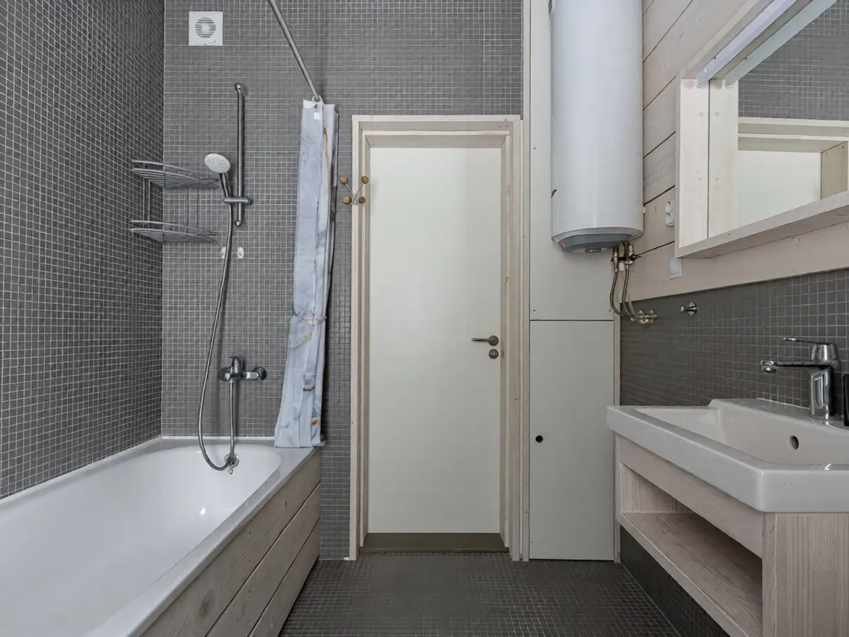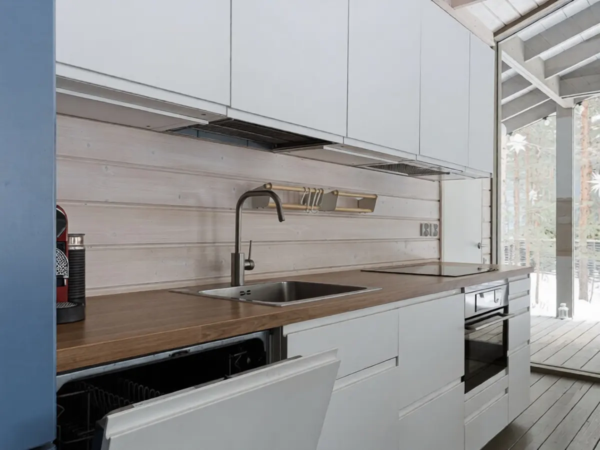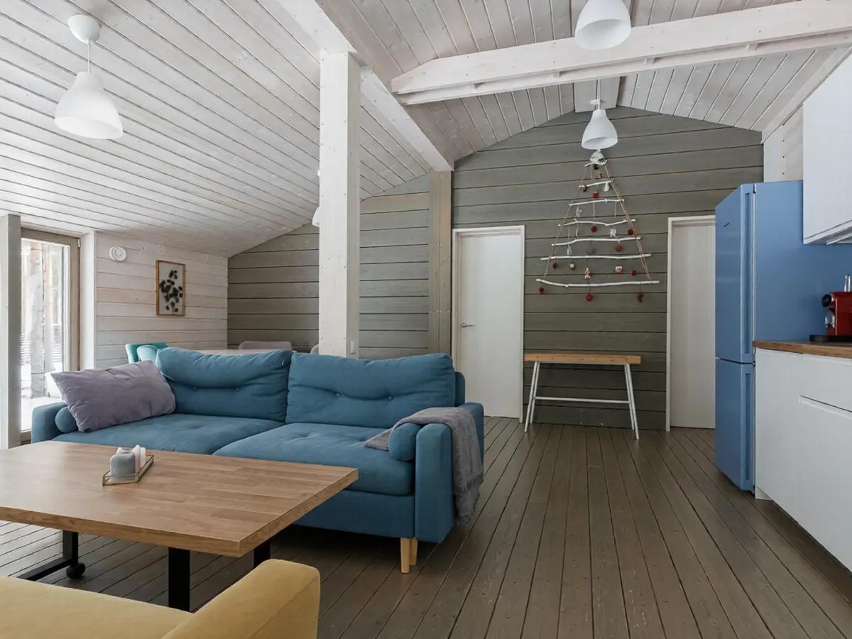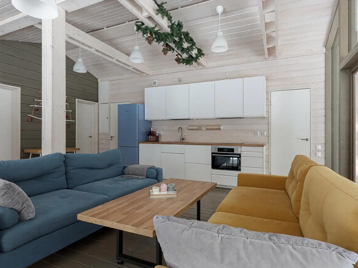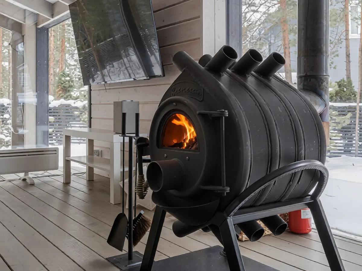 Обогревается электрическими конвекторами, в гостиной дополнительно поставили мощную печь — и для комфорта, и для уютной атмосферы длинными зимними вечерами.