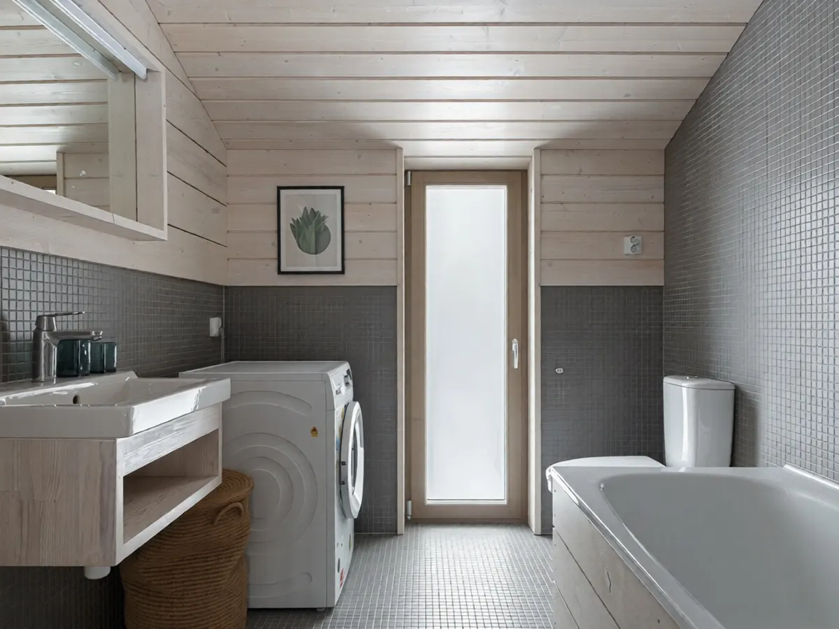 Большая ванная комната с окном — еще одна отличительная деталь этого дома.