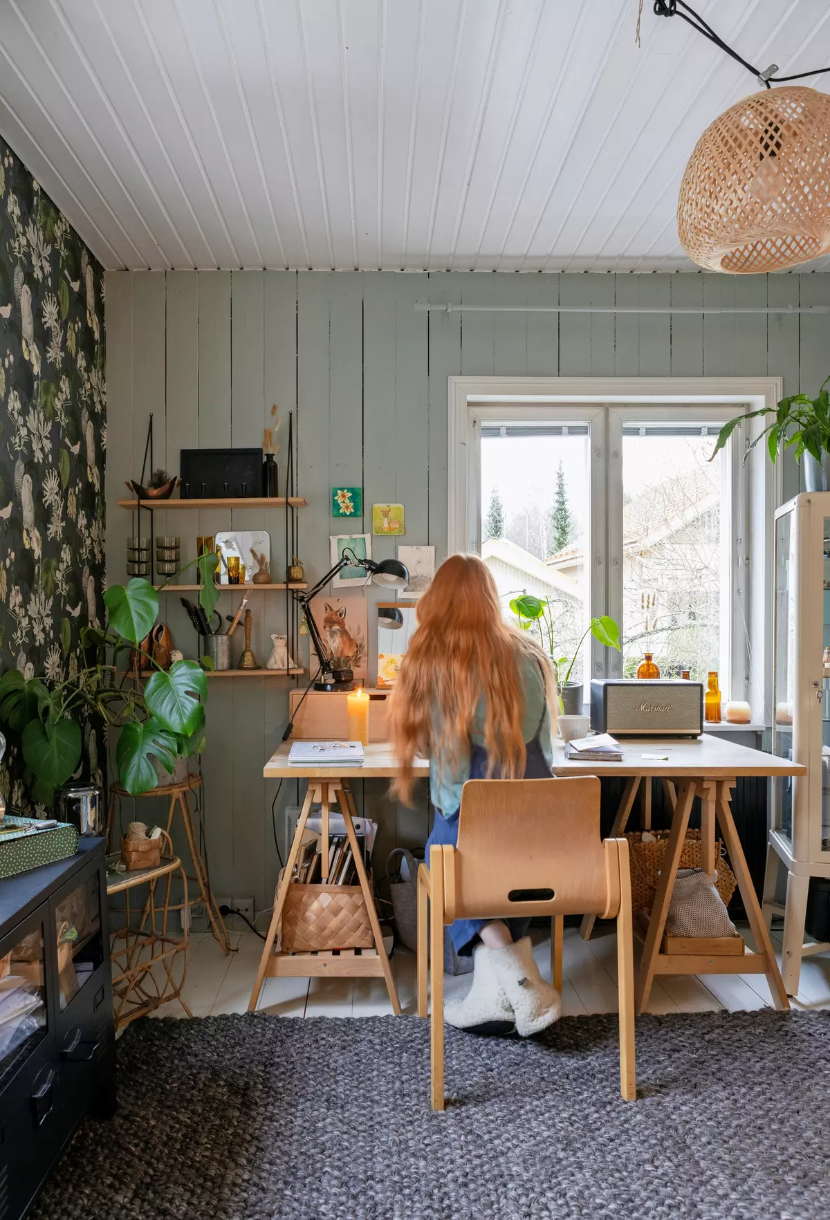 «Я постоянно чем-то занята: вожу кистью, клею обои, перекрашиваю мебель или сношу стены», — говорит Меку Кауханен (Meku Kauhanen), хозяйка старого дома на окраине Хельсинки. Здесь она живет вместе с двумя детьми-подростками (им 15 и 17 лет) и двумя кошками.