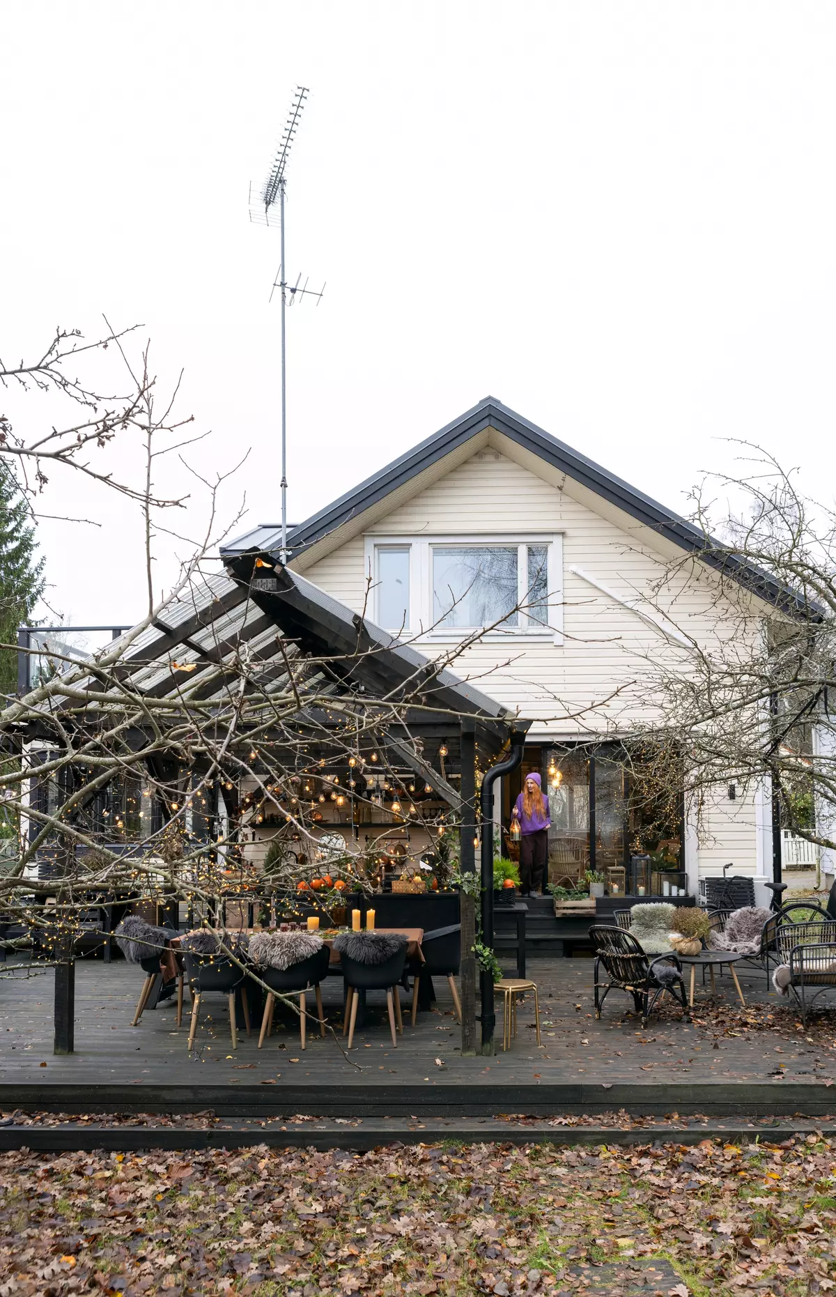 На фото: открытую кухню построили всего пару лет назад. Весной и летом семья проводит здесь много времени за совместными ужинами. Осенью Меку развешивает повсюду гирлянды, которые создают чудесную предновогоднюю атмосферу. Зимой уличной кухней тоже пользуются, хоть и значительно реже. Например, жарят мясо на гриле или коптят рыбу.
