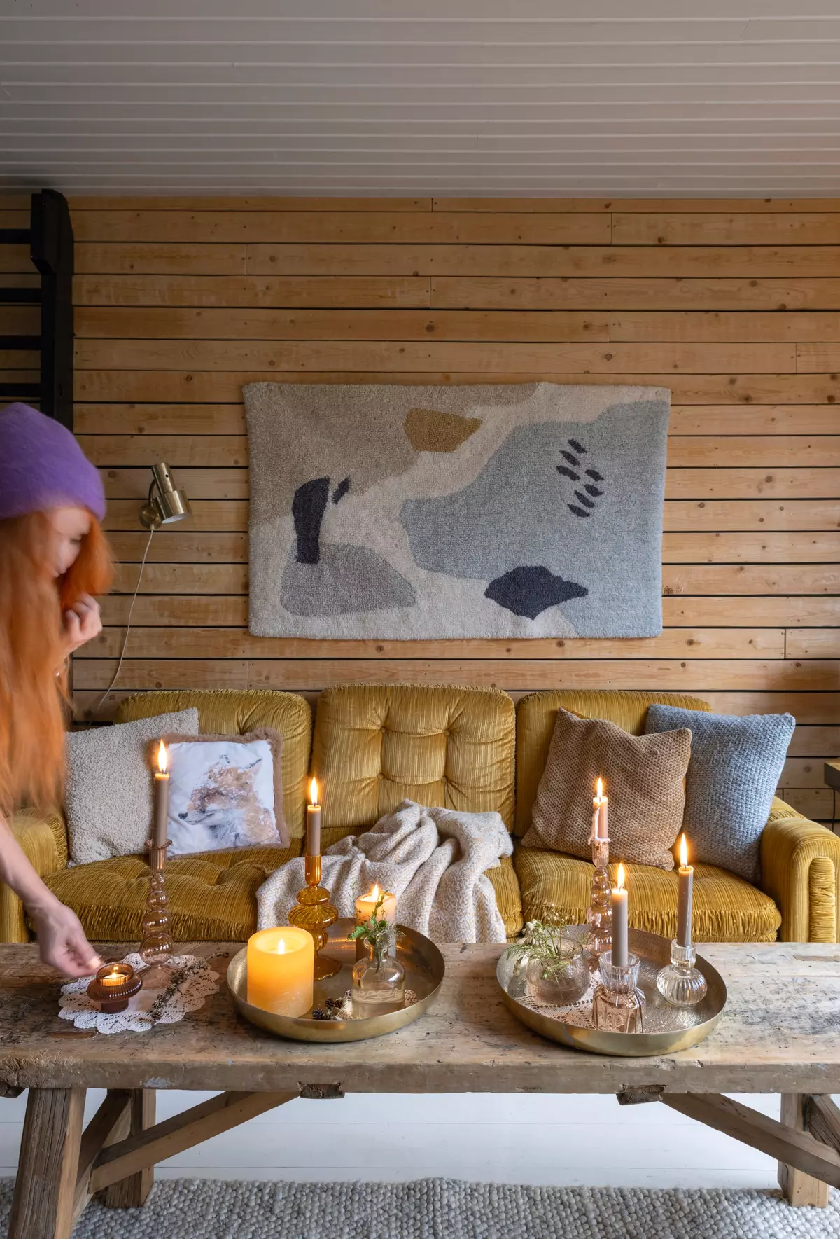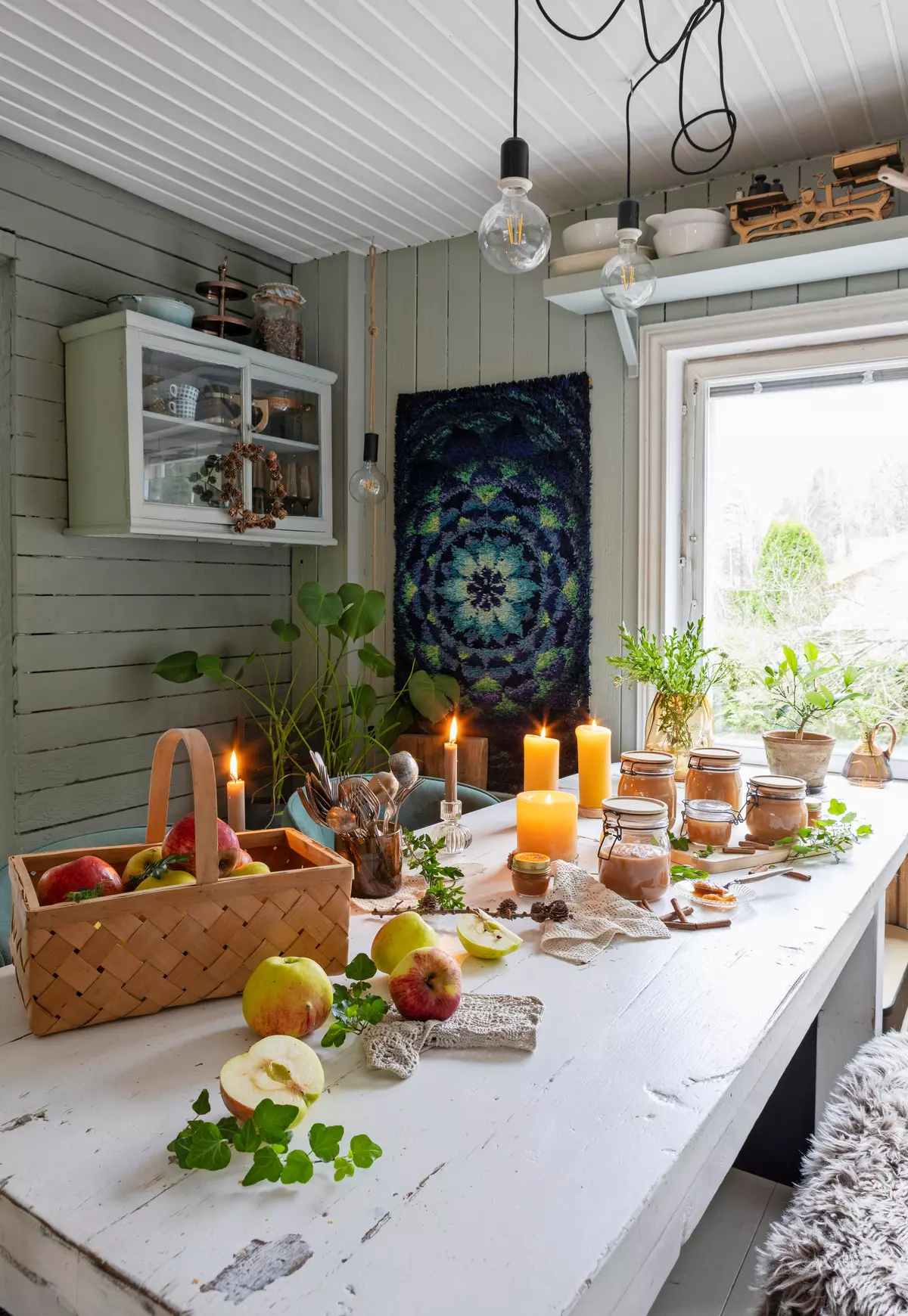 Хозяйка зажигает свечи круглый год — даже летом. Они используются не столько для освещения, сколько для создания уютной и согревающей атмосферы. Мерцающий свет наполняет дом теплом.