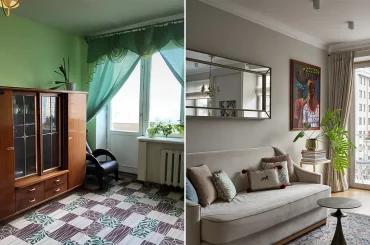 В этой 2-комнатной хрущевке совместили несовместимое: сделали кухню в скандинавском стиле, а гостиную оформили с элементами советского ретро. Получилось смело и интересно.
