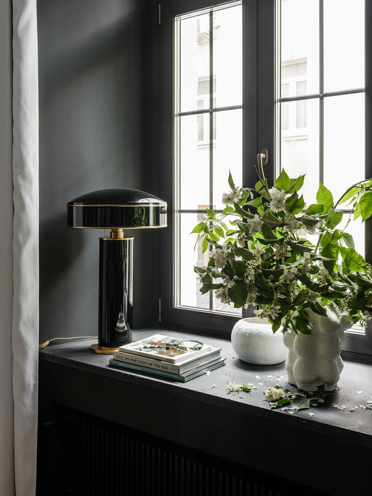 Настольная лампа Candy на матовом бетонном подоконнике — современный дизайн, изготовлена на итальянской фабрике Laudarte.