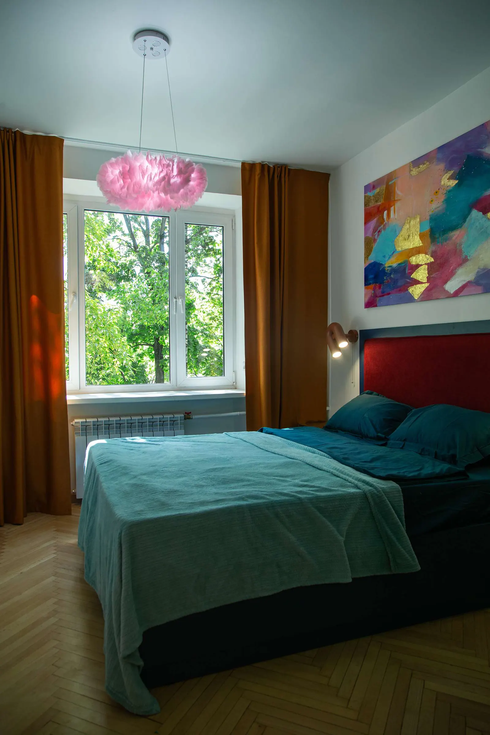 Так выглядит спальня. Здесь тоже ярко, но цвета менее насыщенные.