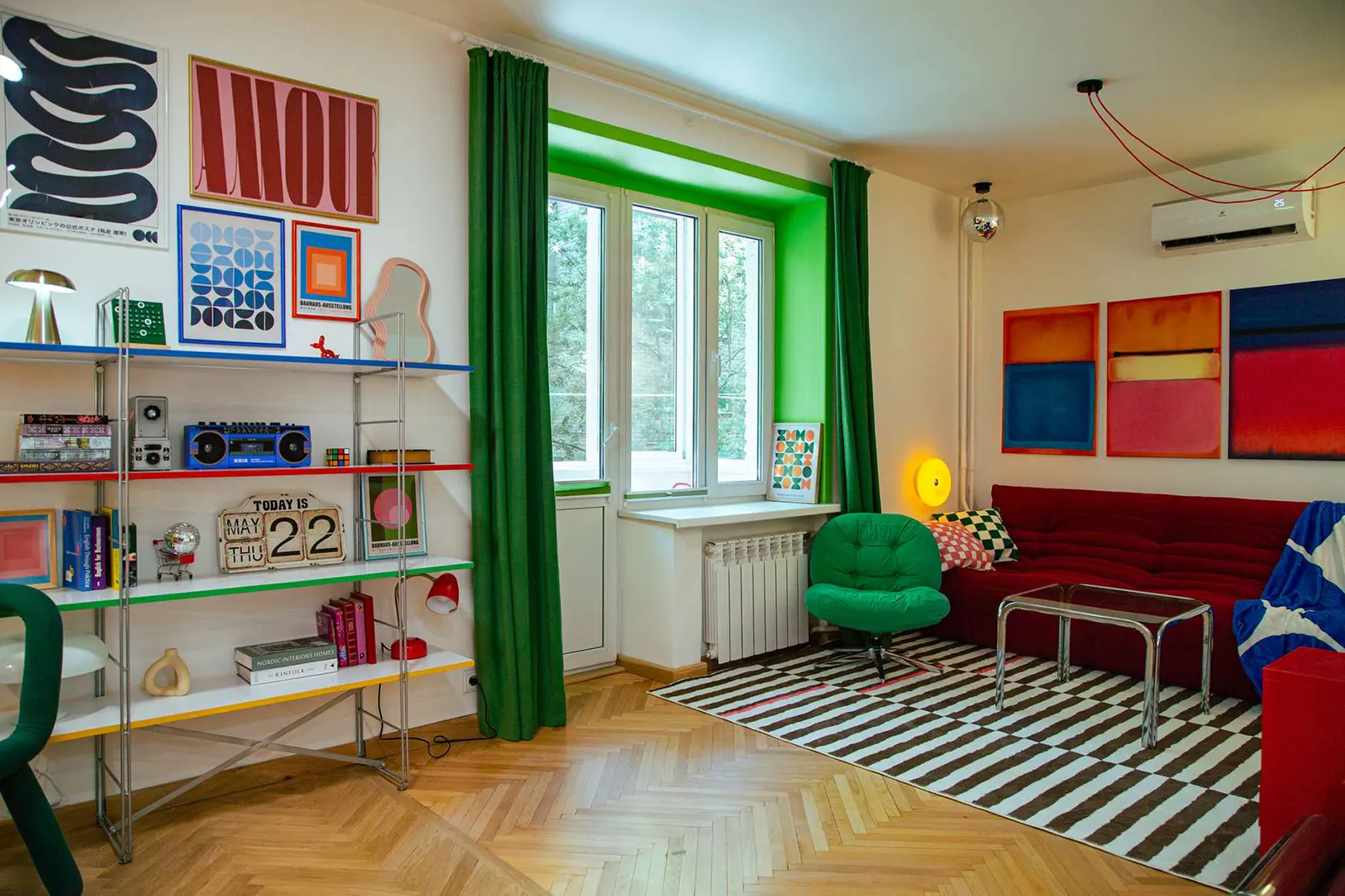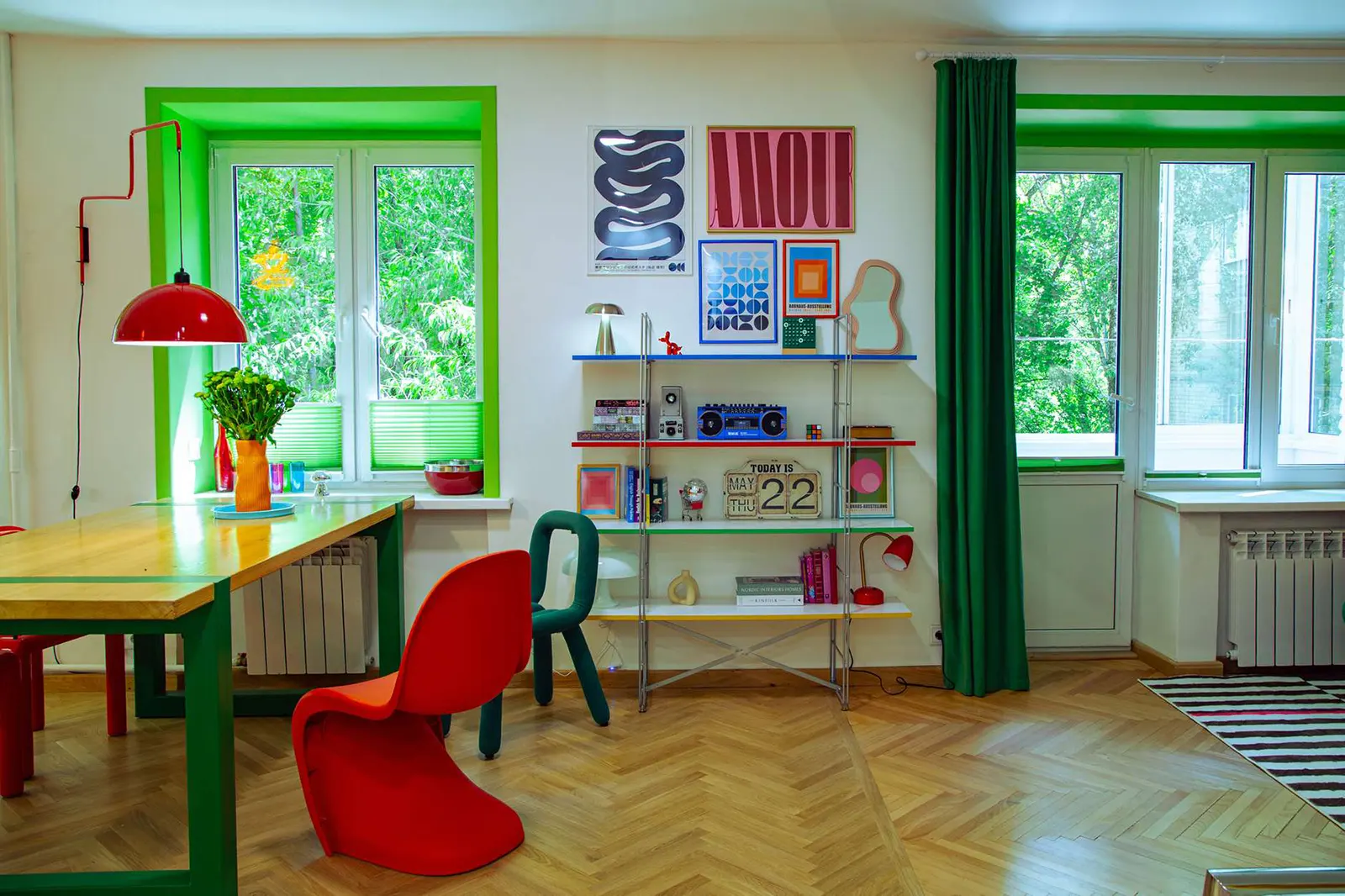 Дофаминовый интерьер — это стиль дизайна, призванный вызывать радость и выброс «гормона счастья» за счет ярких цветов и необычных форм. Противоположность минимализма и аскетичного сканди.