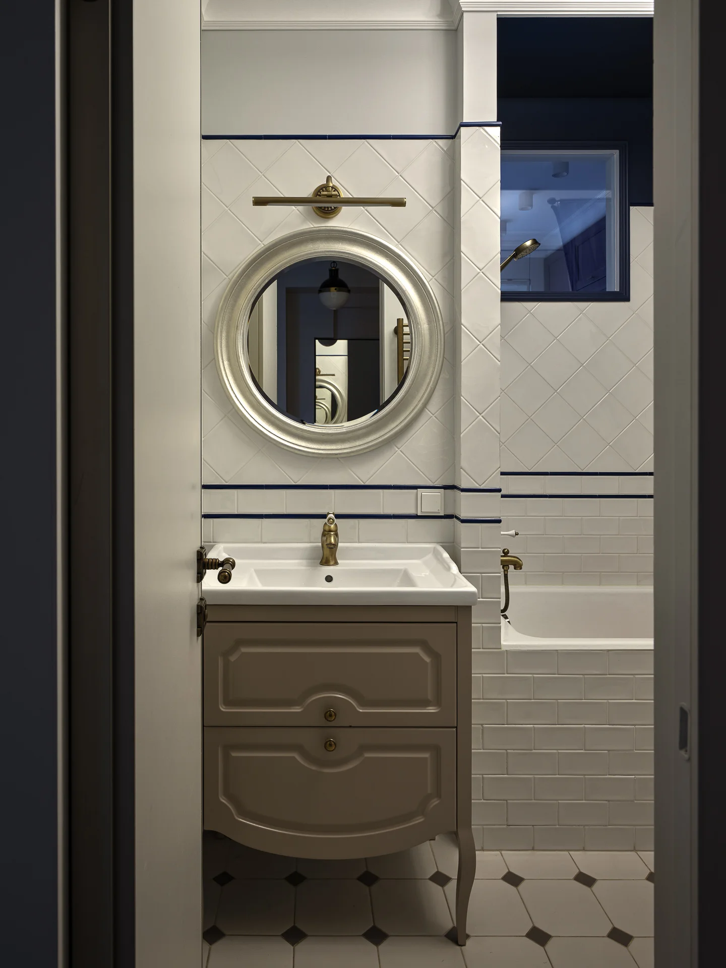 Вся плитка от Kerama Marazzi. Синяя лента-бордюрчик, разделяющая плитку двух видов, тоже от этого бренда.