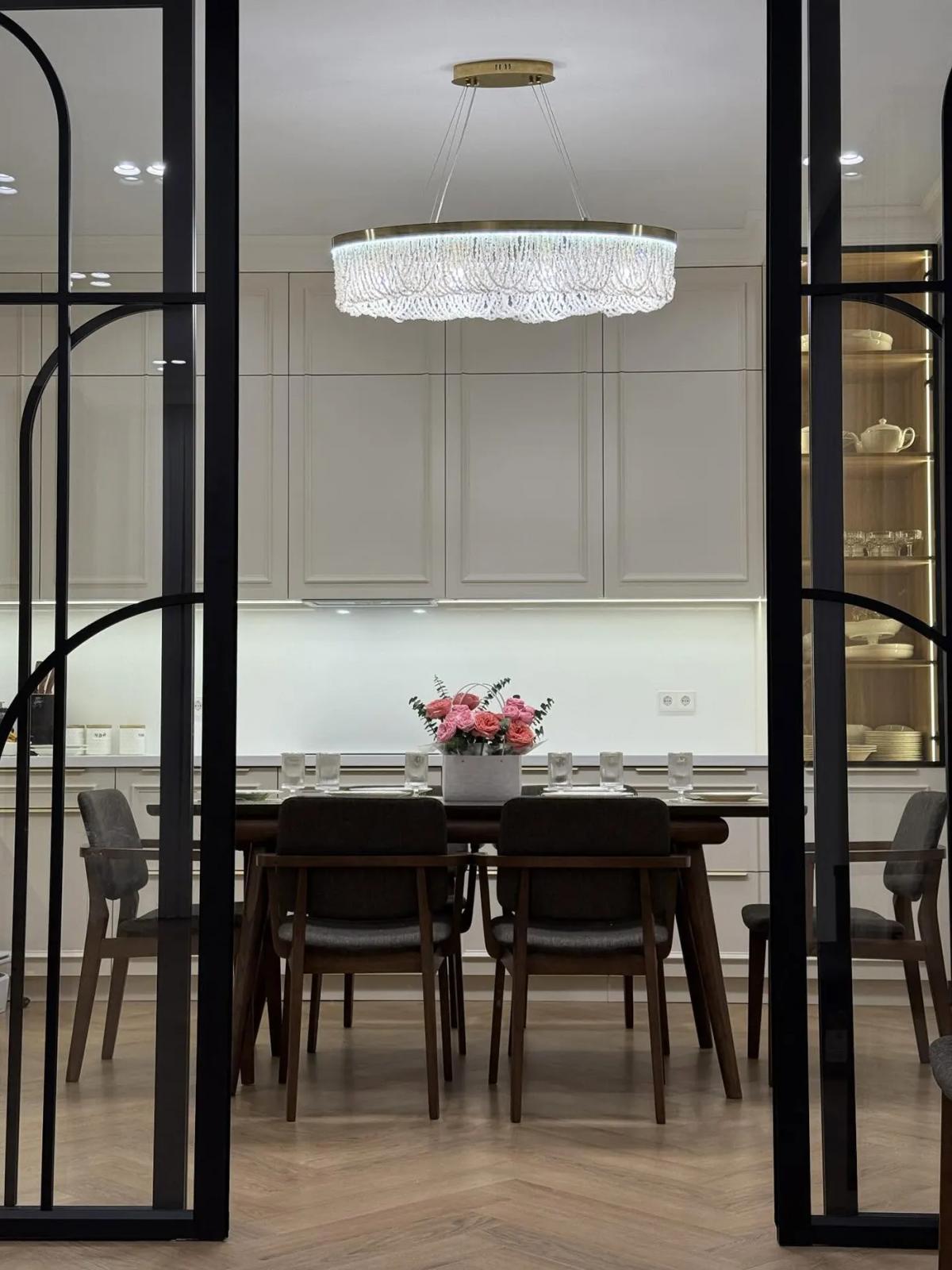 «Сейчас в моде кухни без верха, с трубой и кафелем до потолка. Но я не модная, а практичная. Выжимаю из каждой потраченной копейки максимум хранения. Стиль тоже выбрала не трендовый минимализм. У нас дома — вечная неоклассика. С цветом очень долго возились, но в итоге получили то, что нужно», — делится Мухайе из Казахстана.