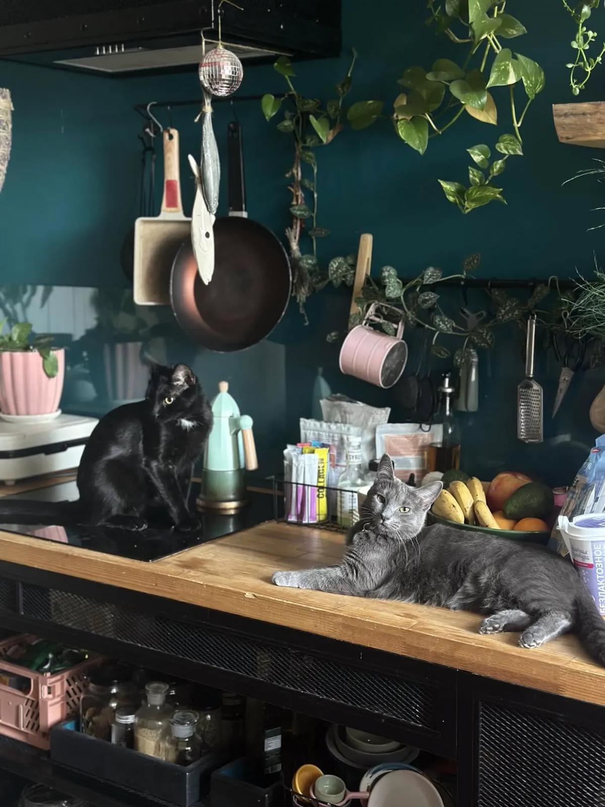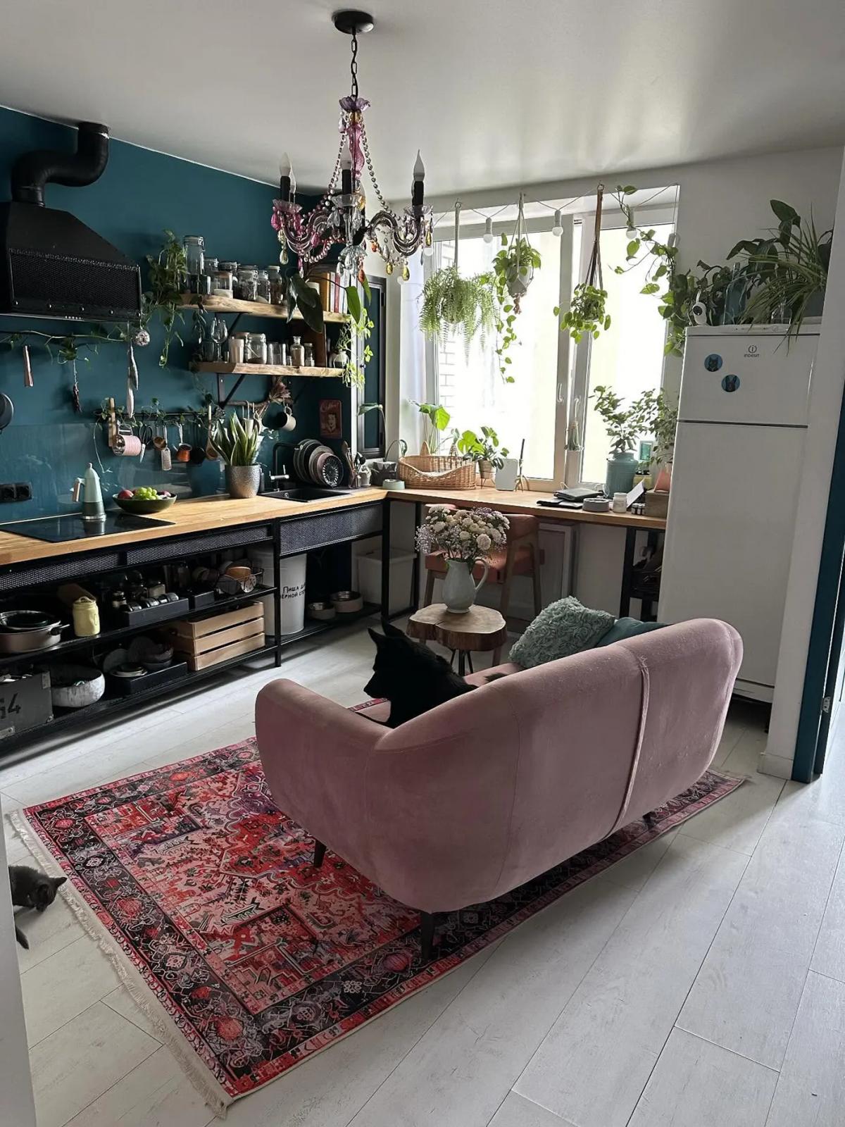 Яркая кухня в петербургской однушке, хозяйка которой любит цветы и животных