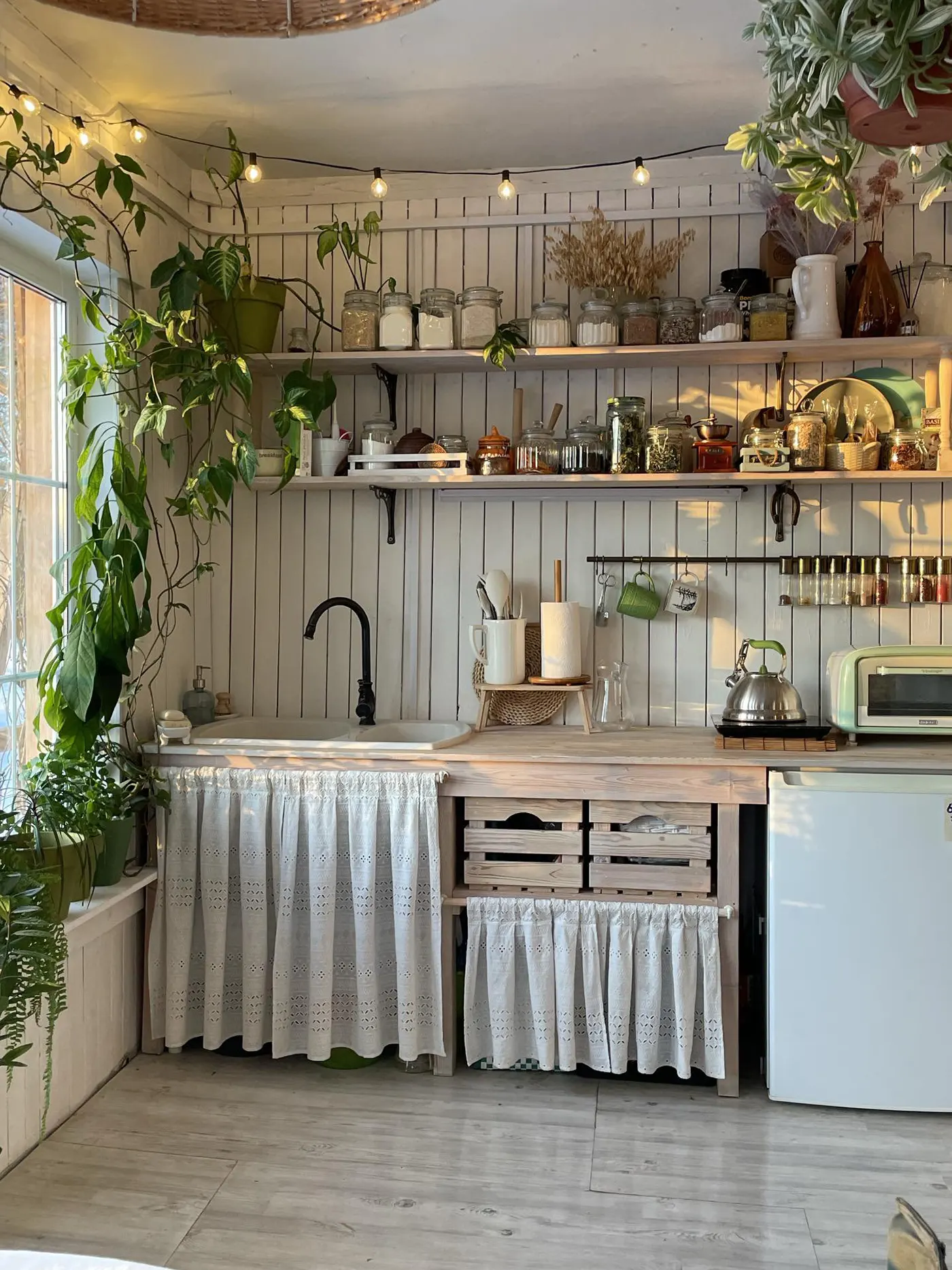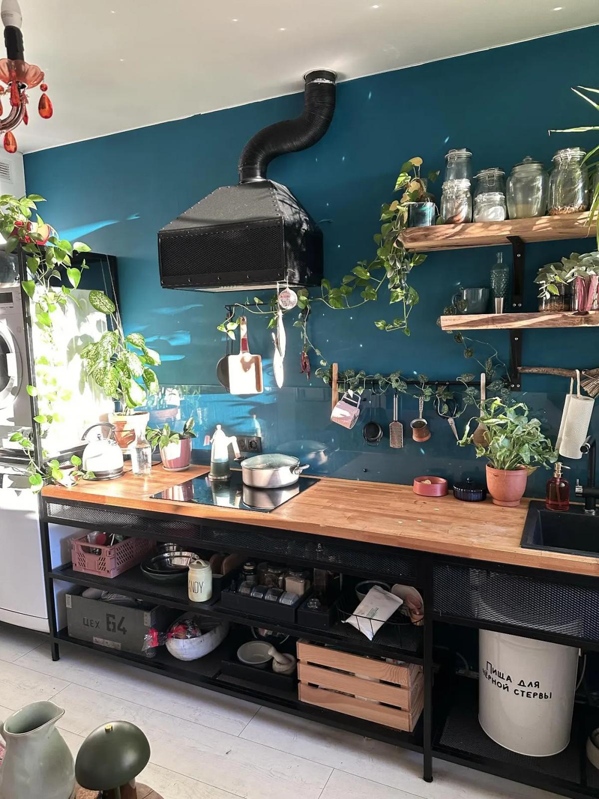 Хозяйка этой интересной кухни — девушка по имени Аля. В 2023 году они с мужем купили участок на берегу озера и построили каркасный дом. Для кухни выделили самое большое и светлое помещение.