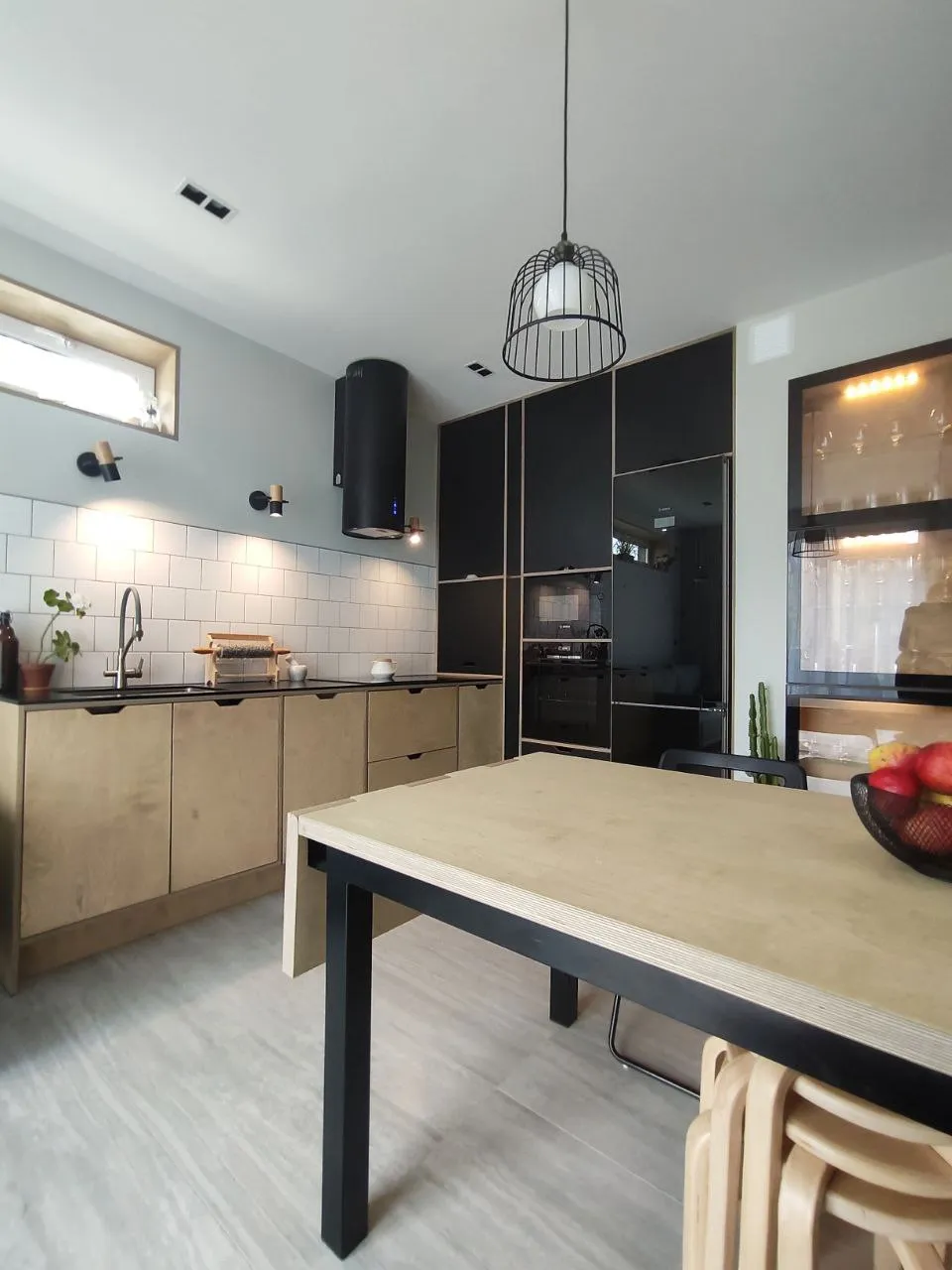 Эту необычную кухню, сделанную на заказ из влагостойкой березовой фанеры, можно увидеть в одном из загородных домов Минска.