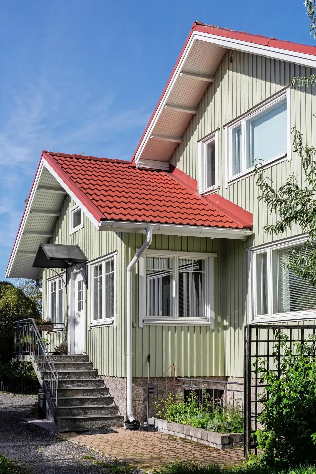 Этот деревянный дом стоит на одной из улиц финского города Турку. Его фасад в скандинавском стиле выкрашен в оливковый цвет, а крыша — в классический красный.