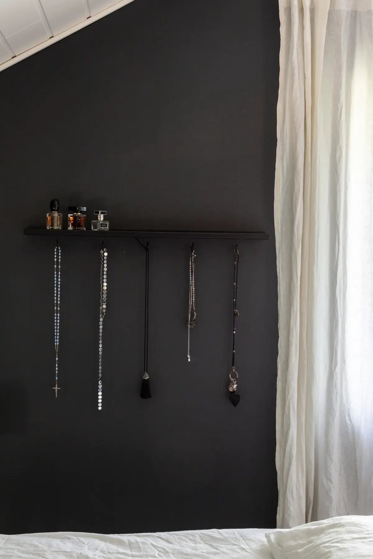 Старую полку для фоторамки от IKEA хозяйка переделала в подставку для украшений и парфюма. Получилось необычно и стильно.