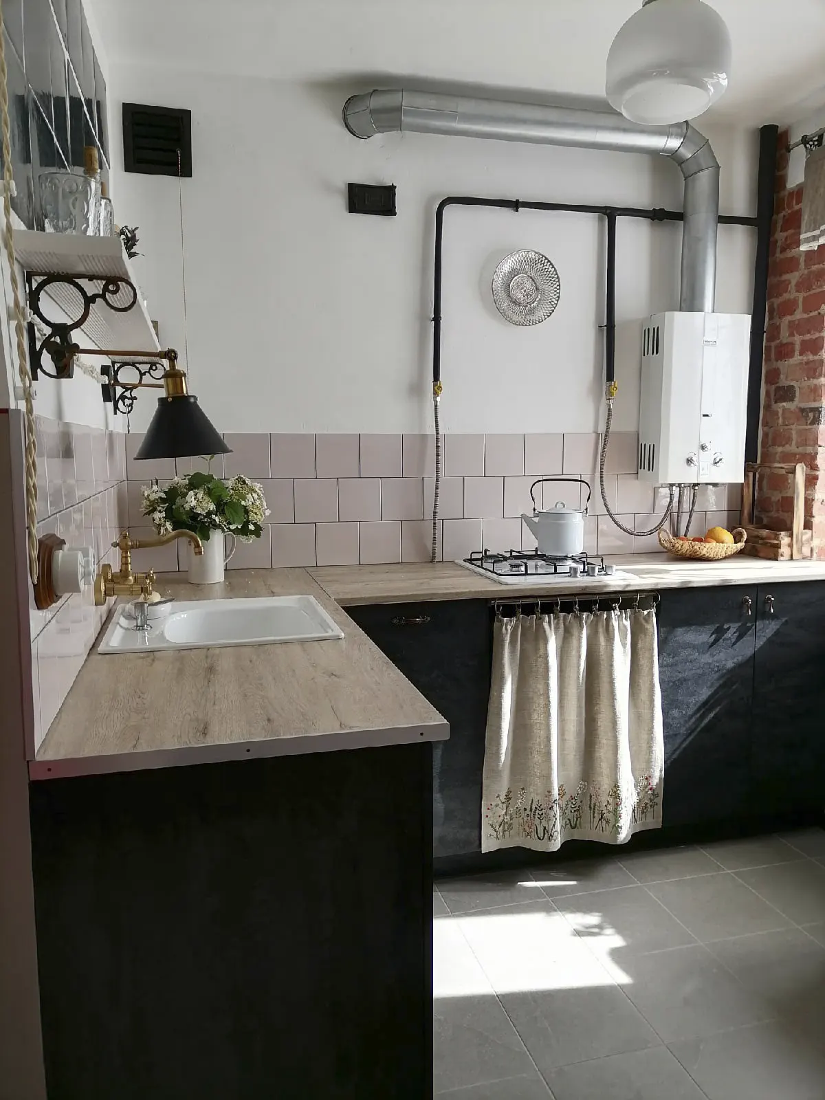 Екатерина с мужем самостоятельно отремонтировали маленькую кухню в хрущевке, причем сделали это нестандартно. Вместо классического скандинавского ремонта с кухней из IKEA или «Леруа Мерлен» они придумали ретро-интерьер с элементами деревенского кантри.